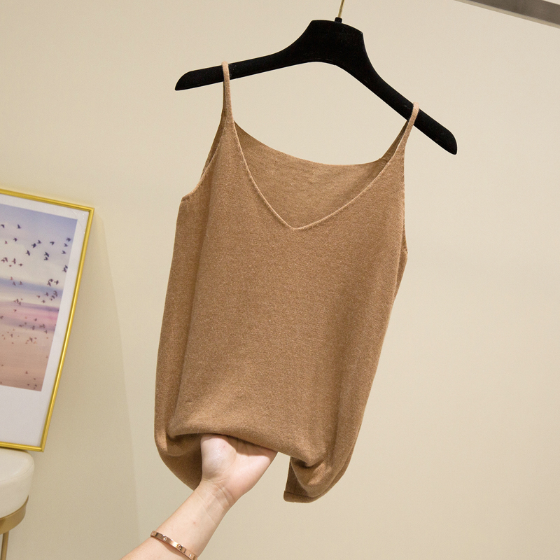 Spring/Summer 2022 new V-neck slim knitted camisole vest women wear sexy inner sleeveless bottoming top