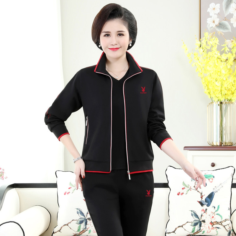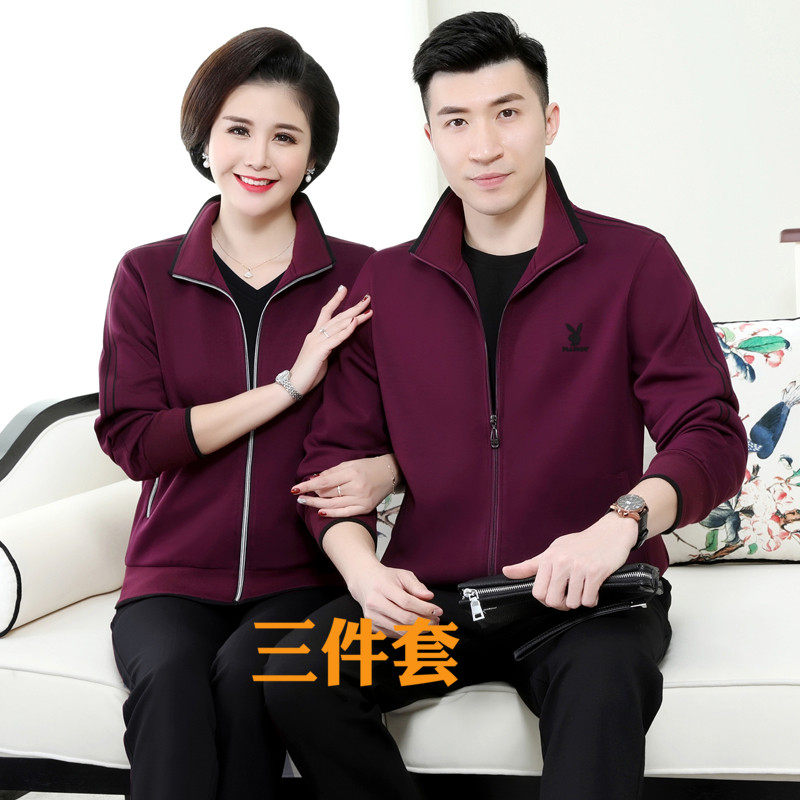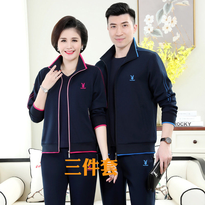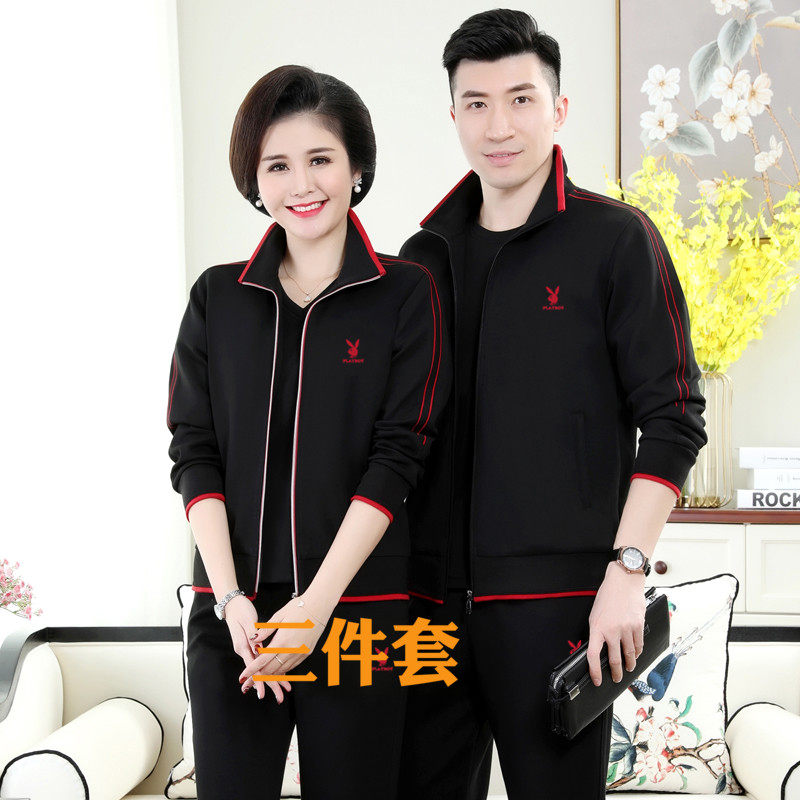 Playboy sports suit men and women spring and autumn clothes couple middle-aged and elderly parents middle-aged sportswear three-piece suit