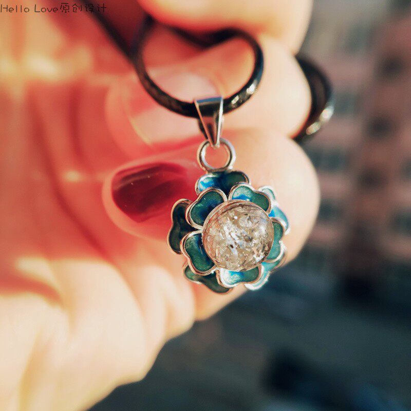 hellolove original design blue flower cluster pure silver breastmilk tire serve pendant DIY material bag baby memorabilia