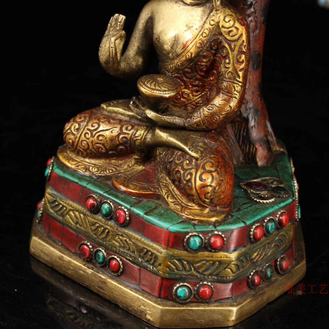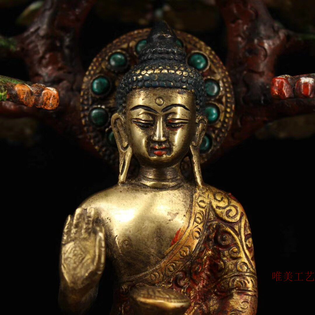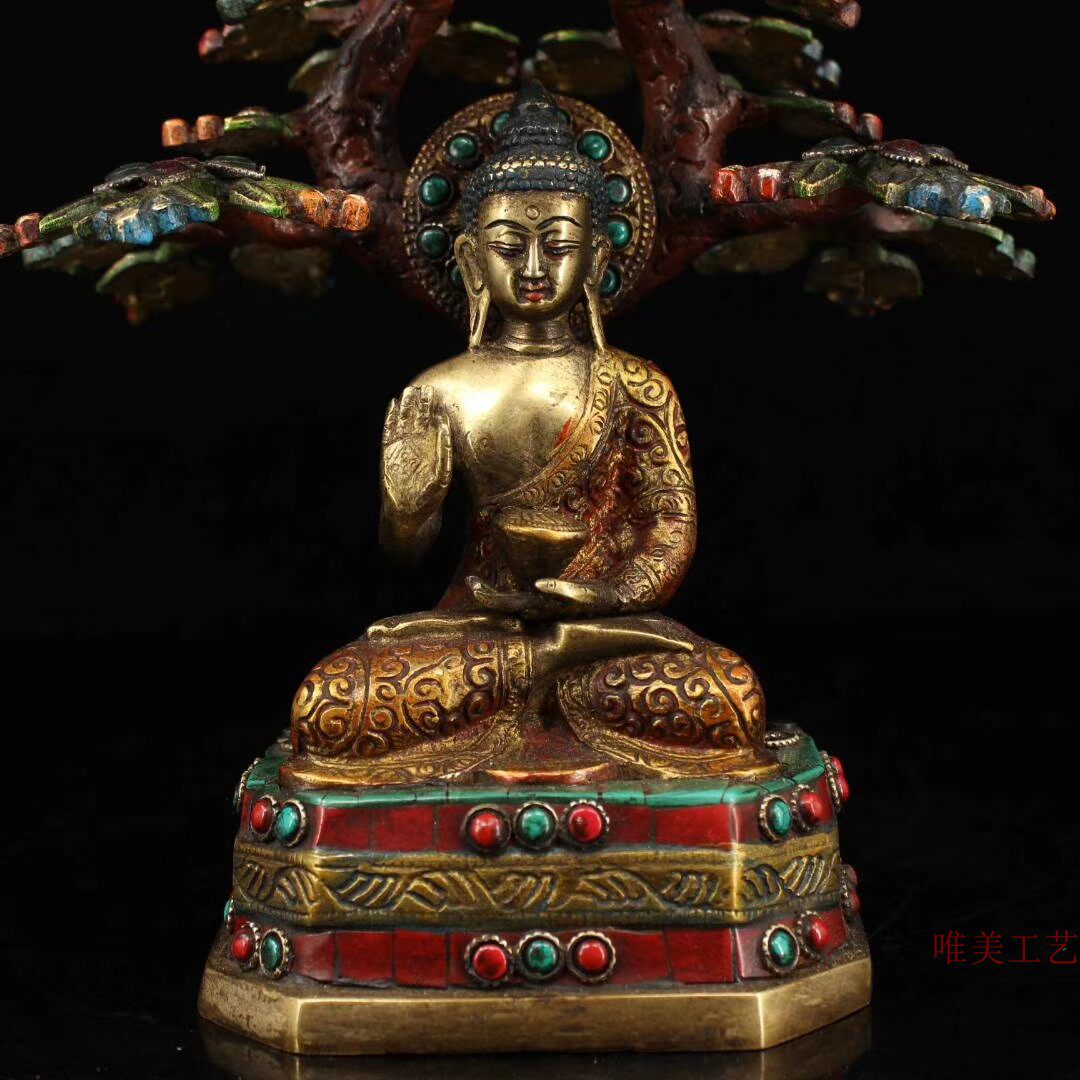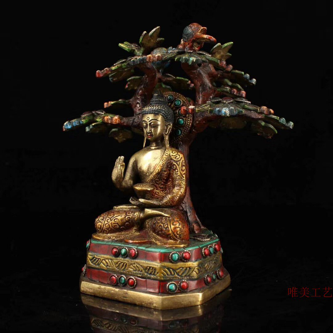 Ancient Art Xuan pure copper set of stone painted bodhi tree meditation by Shakamon \\\\\\\\\\\\\\\\\\\\\\\\\\\\\\\\\\\\