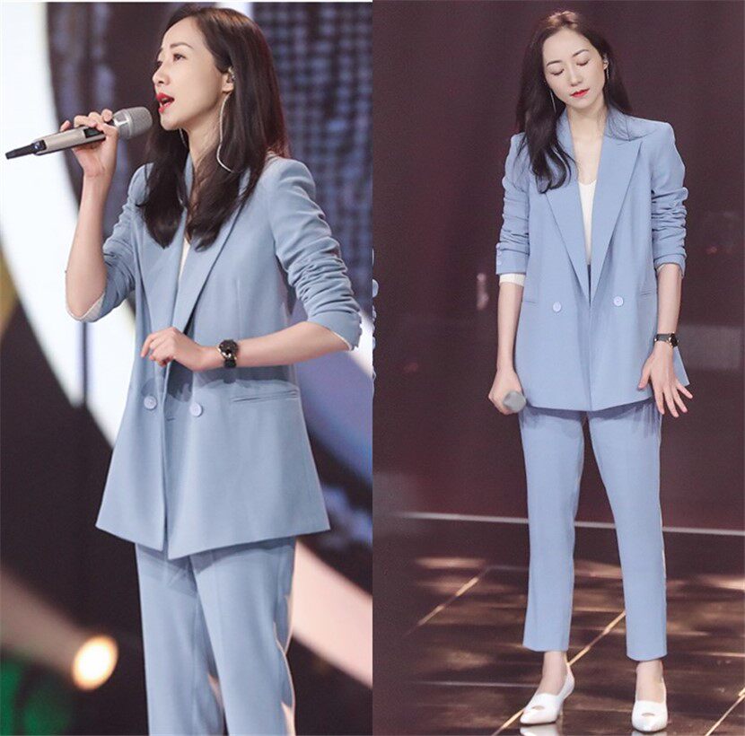 Star Han Xue same style 2022 spring and autumn new Korean version slim suit women's suit Western style casual suit two-piece suit