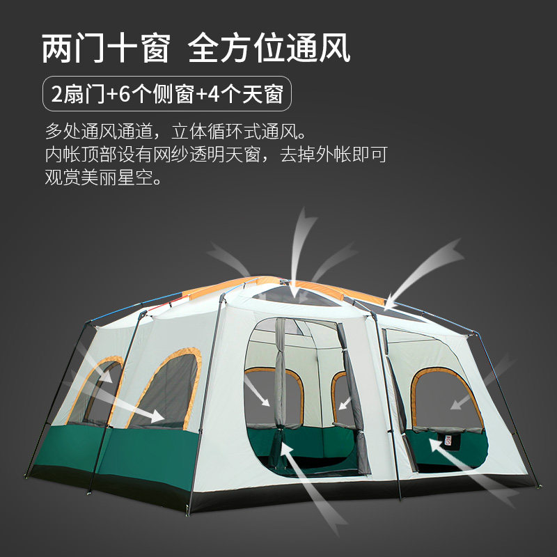 Anti-Rainstorm Double Layer Oversized Tent 10-16 People Outdoor Camping Automatic Tent Multi-Person Camping Two Rooms One Hall
