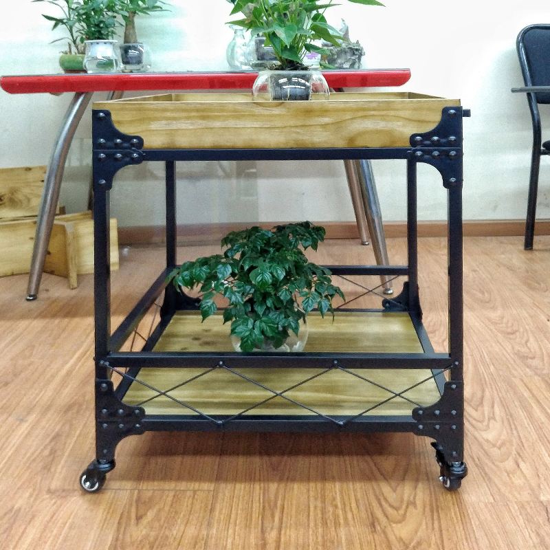 Retro Nostalgia Dining Car Wine Water Tea Water Car Rivet Shelve mobile cart Zoo seasoning car melon and fruit cart