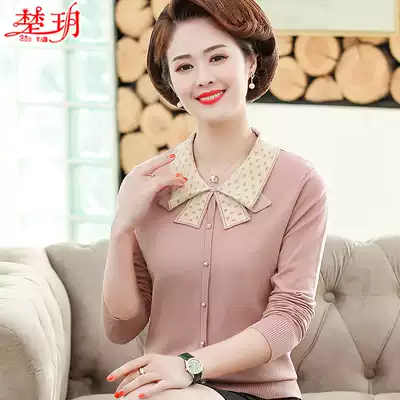 Middle aged and elderly women spring and autumn knitwear lapel collar foreign pie top 2020 new mother spring dress long sleeve T-shirt base shirt