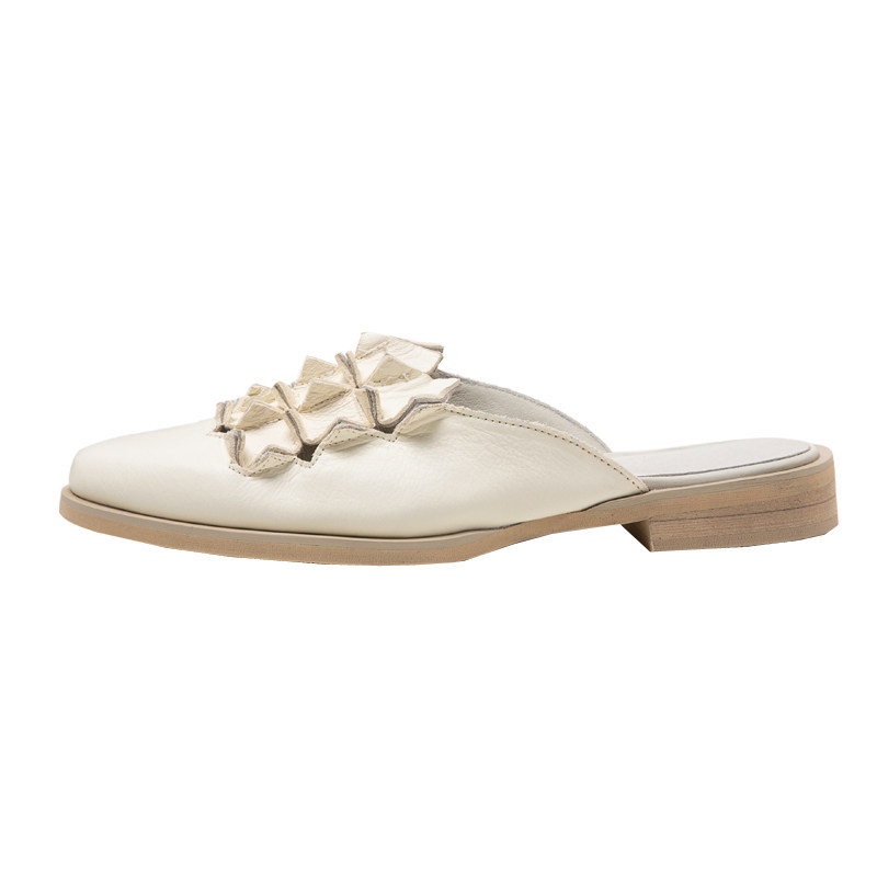 Original Design Leather Baotou Half Slippers Hollow Flat Muller Shoes 2021 New Sandals Outer Wear Thick Sole Women's Shoes