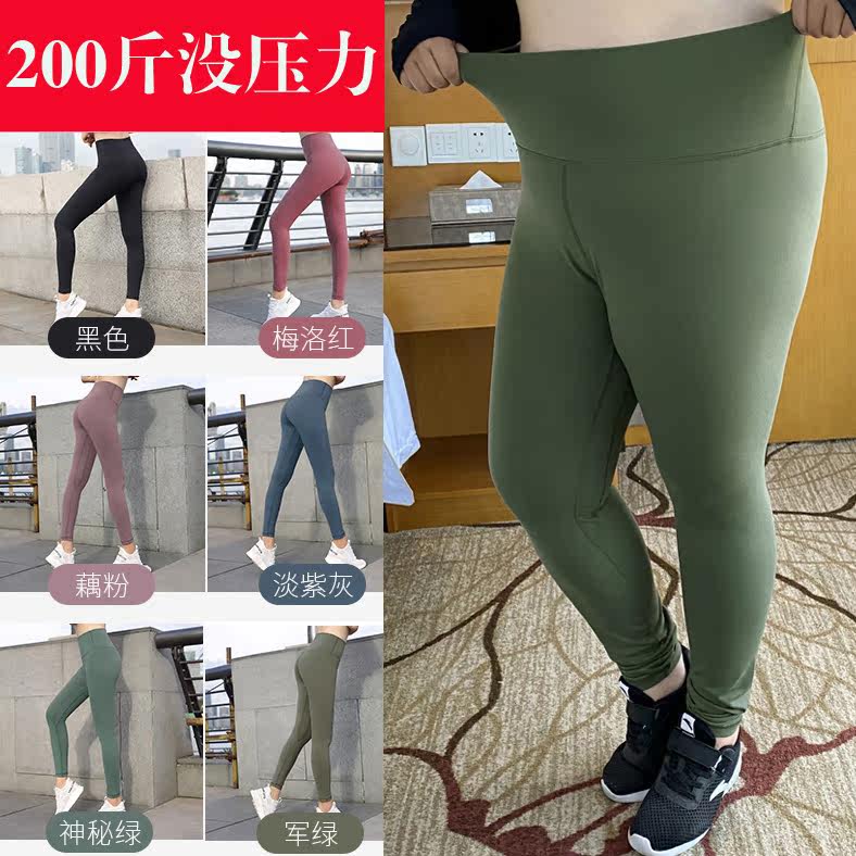 Large size high waist lifting hip pants gym pants female display slim hip tight pants running pants 200 catty and fat mm yoga pants