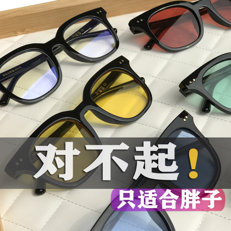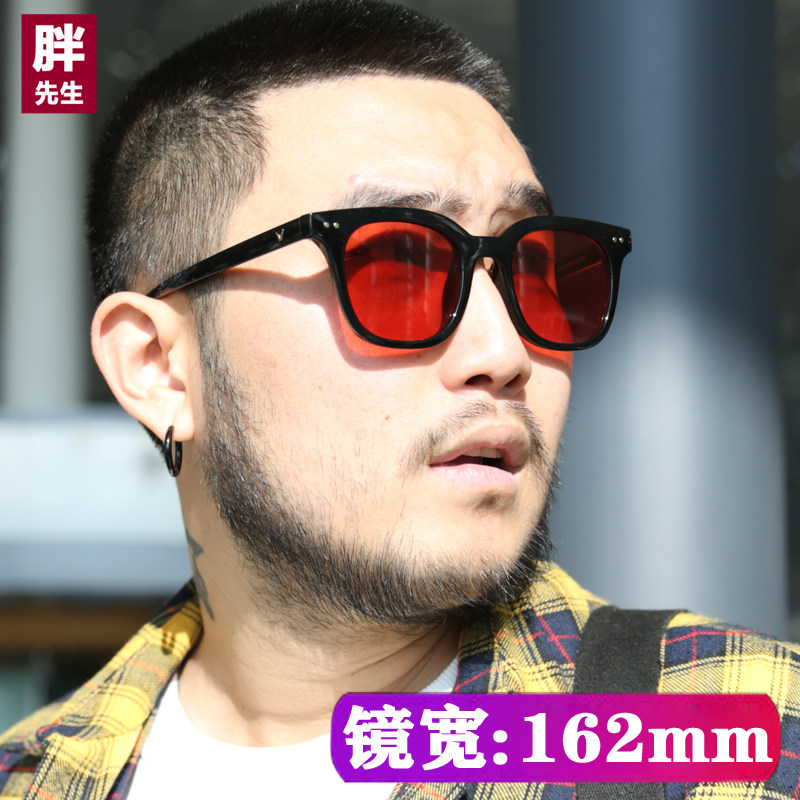 Fat Gentleman Widening Oversize Sunglasses Big Face Fat Round Face Tea Color Glasses Male Tide Big Frame Fat Sub Yellow Sunglasses