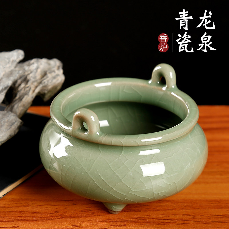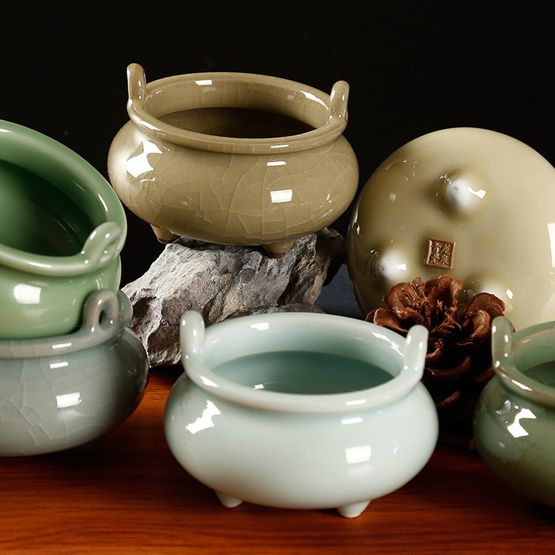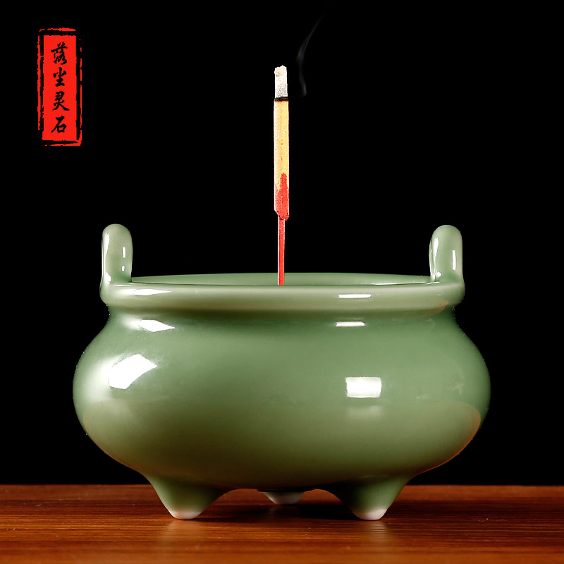 Three-foot double-ear domestic small incense stove tripod creative ceramic room dedicated to ancestors can be inserted scented candle incense stove lavender and fragrant