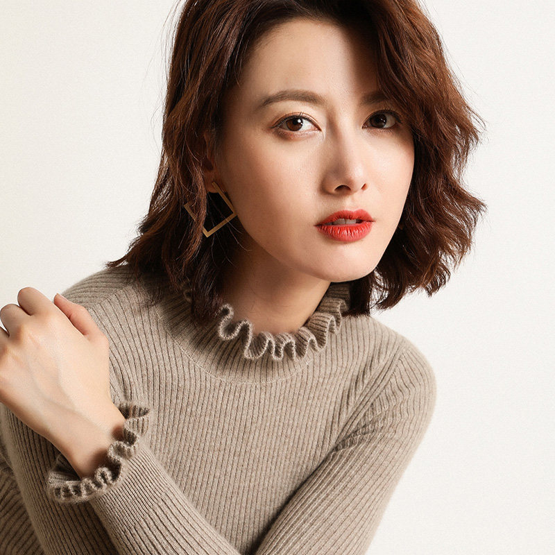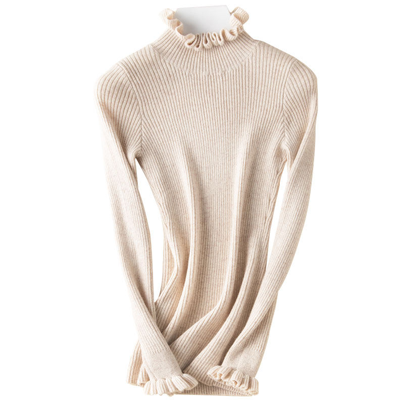 2023 new half-high collar woolen sweater women's cashmere fungus collar short tight-fitting bottoming shirt wood ear flower sweater