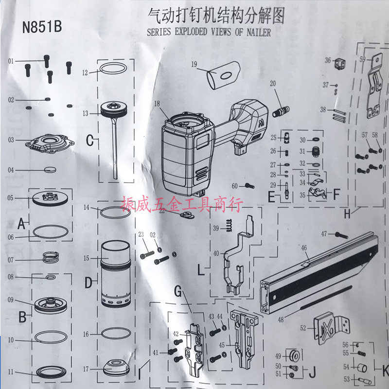 N851 exhaust cover N851 balance valve N851 upper flat cushion N851 exhaust cover spring N851 piston assembly (striker) N851 cylinder assembly (with cushion cushion) N851