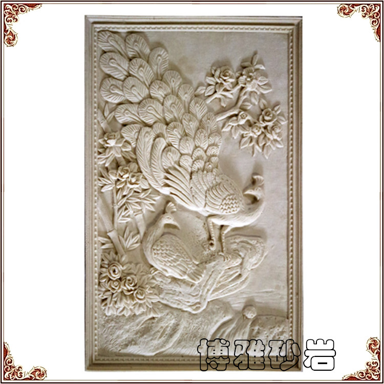 Art sandstone Chinese sculpture three-dimensional relief peacock background wall fiberglass imitation copper hotel dining room screen decoration