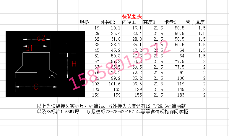 Stainless steel quick fitting clamp set quick welding pipe end sanitary chuck butt welding end