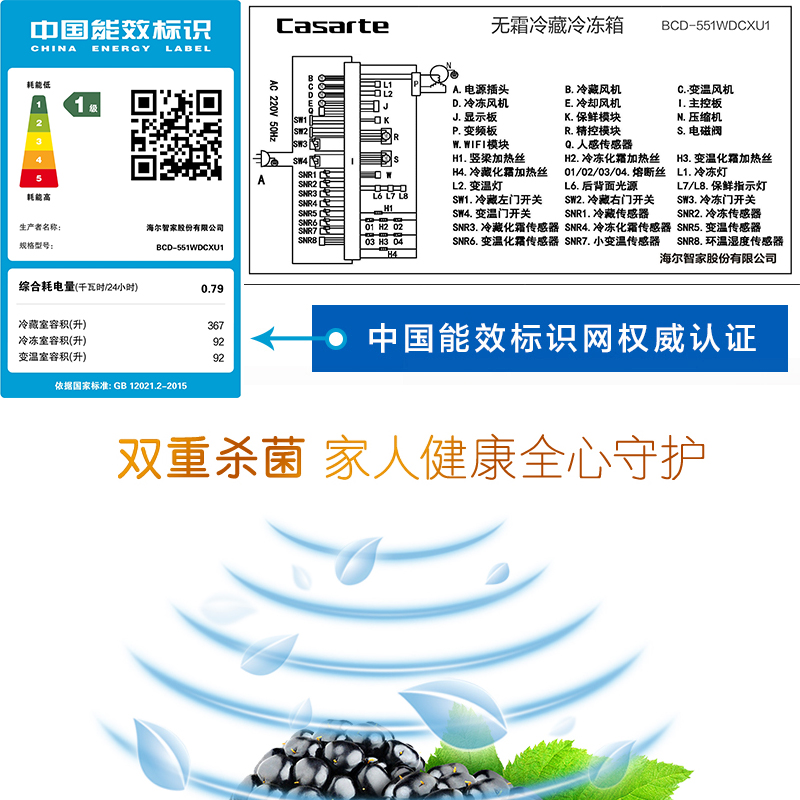 Casarte Casarte BCD-551WDCXU1 Embedded Cross Door Inverter Smart Maternal and Child Refrigerator