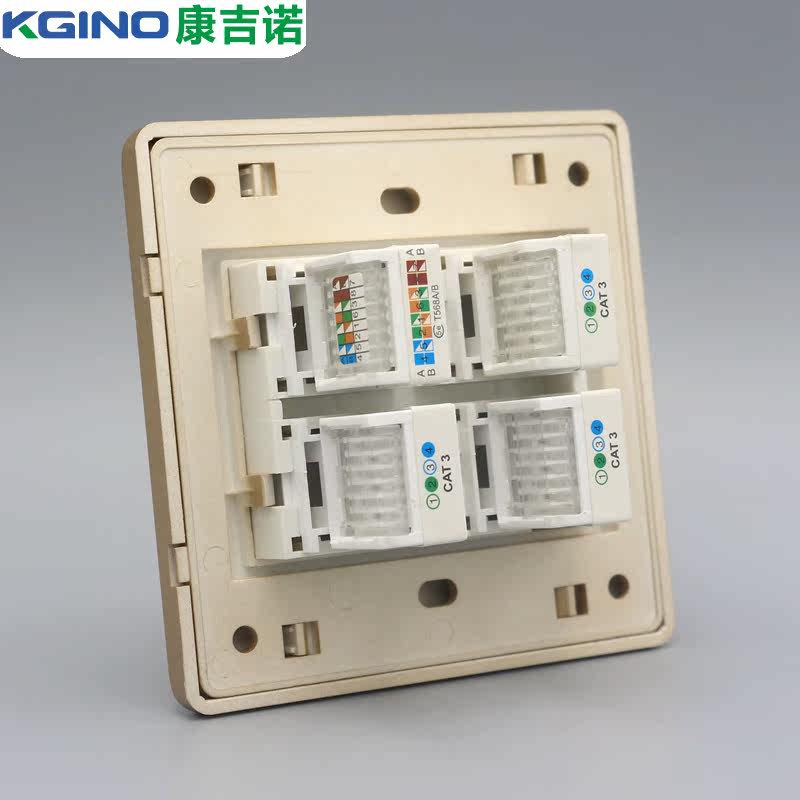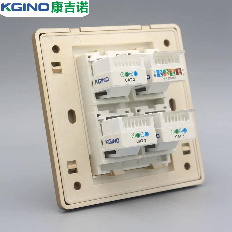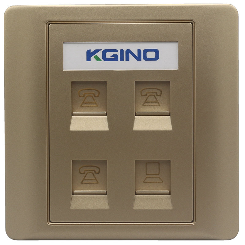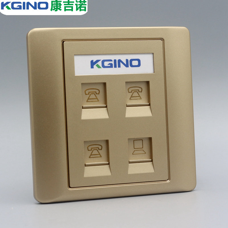 Gold 86 type four-port VOIP socket 1 RJ45 computer LAN port + 3 RJ11 voice information panel