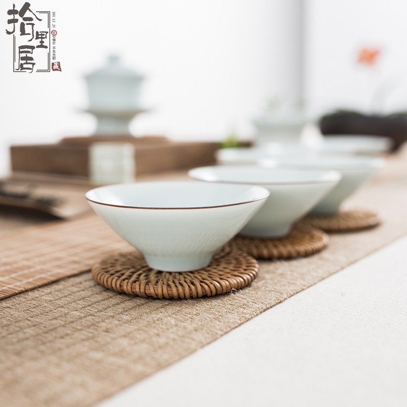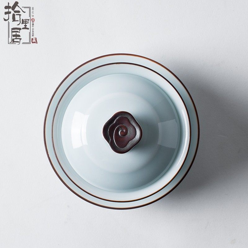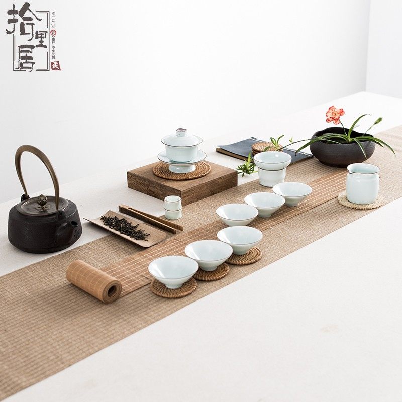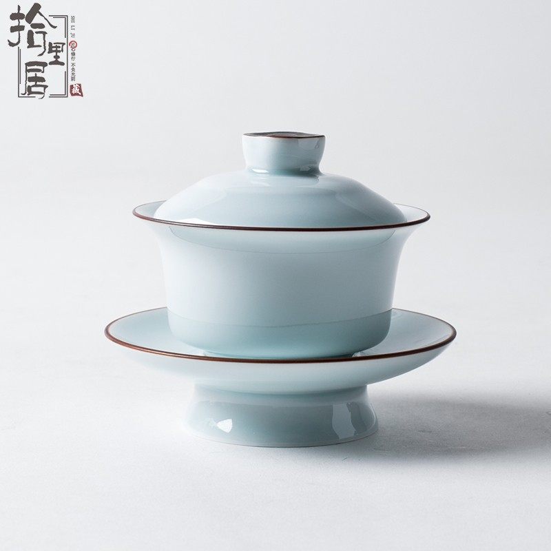 Shiliju high-grade Jingdezhen Celadon Gongfu tea set Household ceramic light luxury tea cup cover bowl Living room gift box