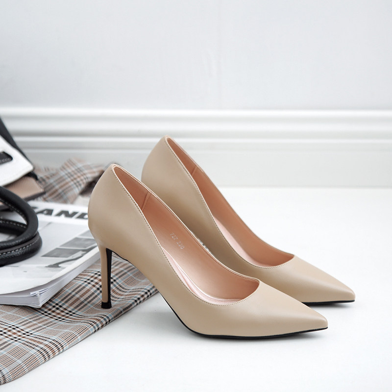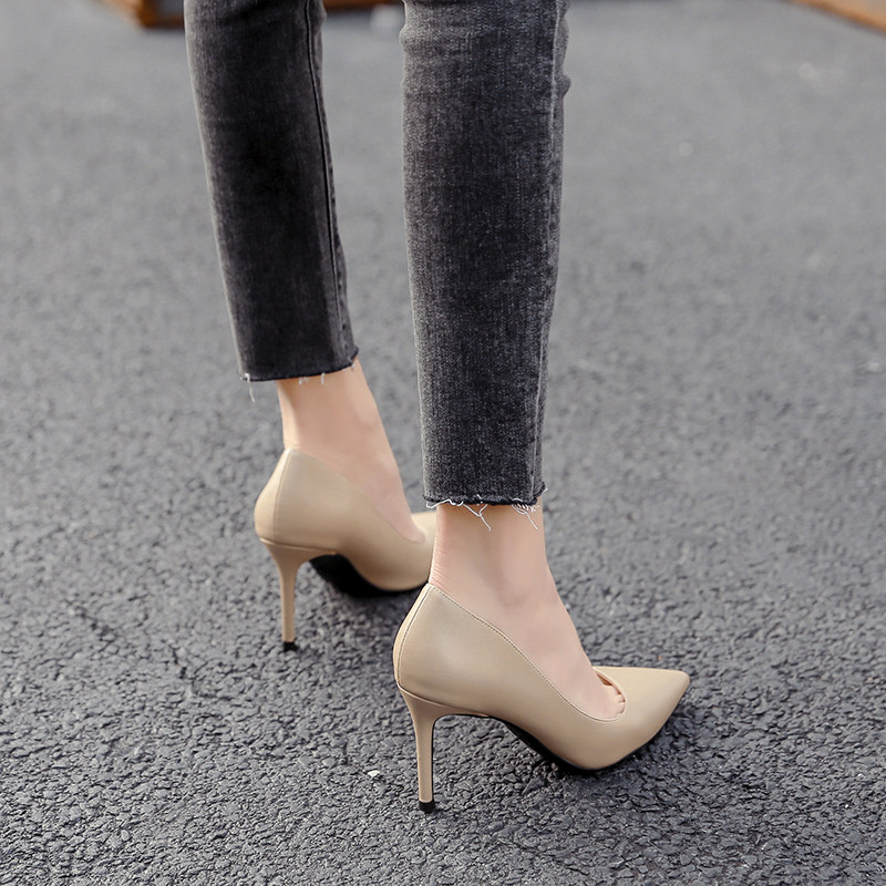 2021 Spring and Autumn New heels Sexy nude shoes with French single - shoe tips and new high heels