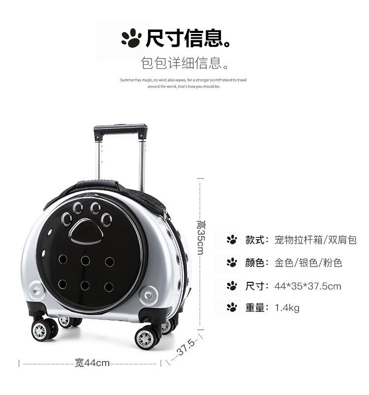 Pet trolley box universal wheel out bag lightweight pet box multi-functional PC breathable trolley travel cage cat