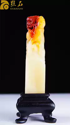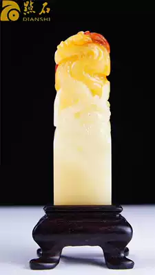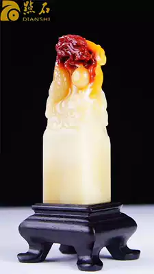 Shoushan stone seal, hibiscus stone seal, Laotian Huangshi ornaments, original stone seal carving, Beast dragon carving