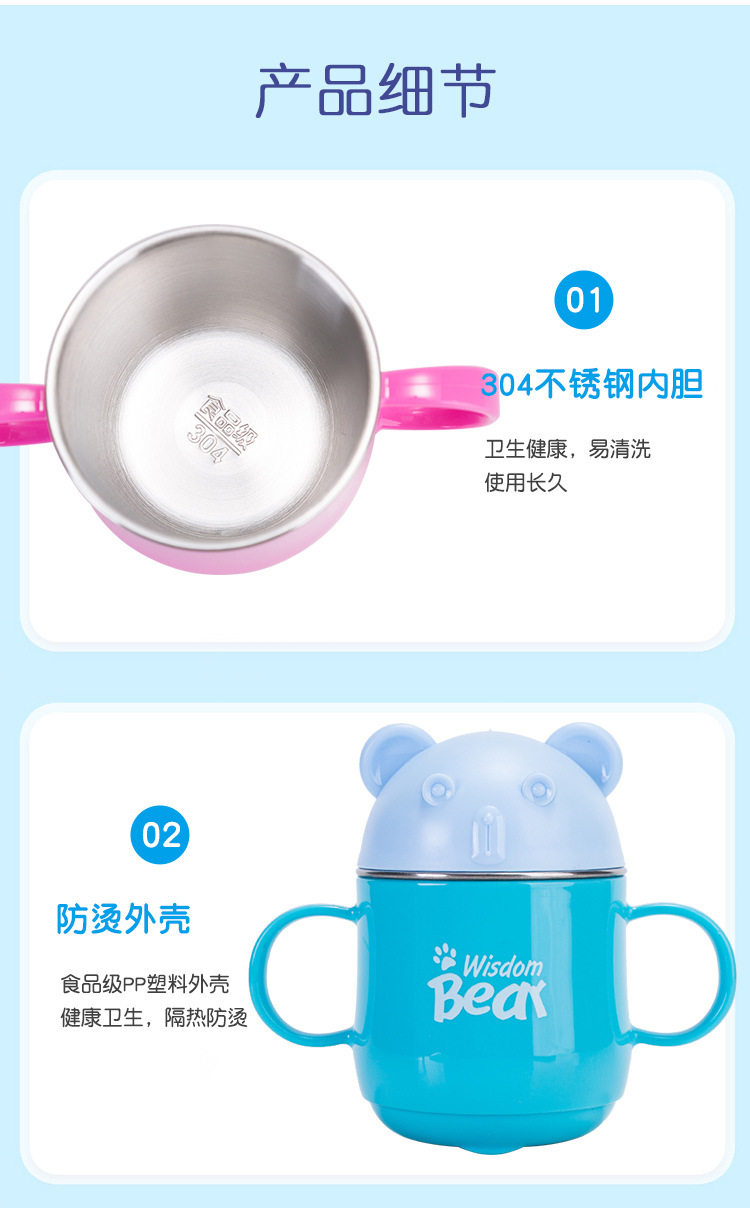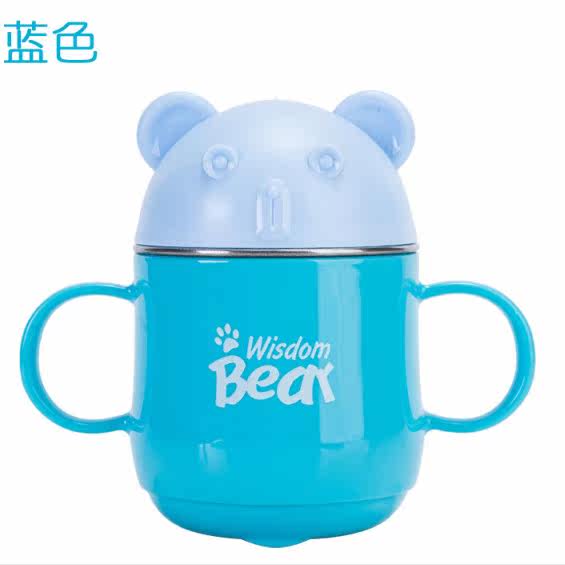 Sky blue Little Bear school Drinking cup (stainless steel liner) Meired Little Bear Learning Drinking Cup (stainless steel liner)