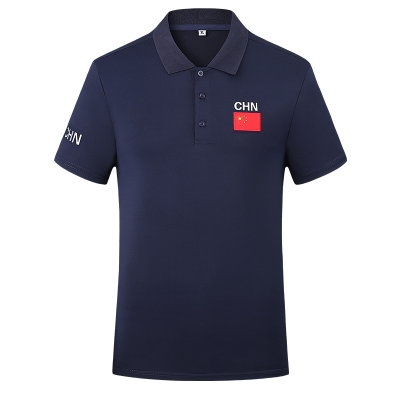 China national team men's and women's embroidered version of the flag short-sleeved lapel POLO shirt Sports T-shirt Summer martial arts training national uniform