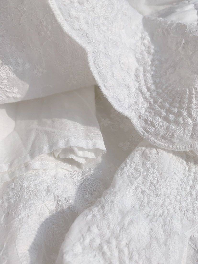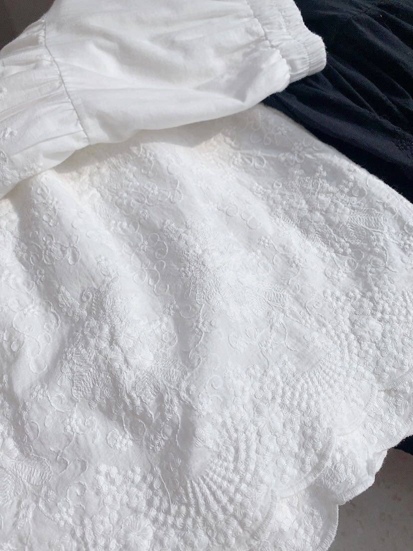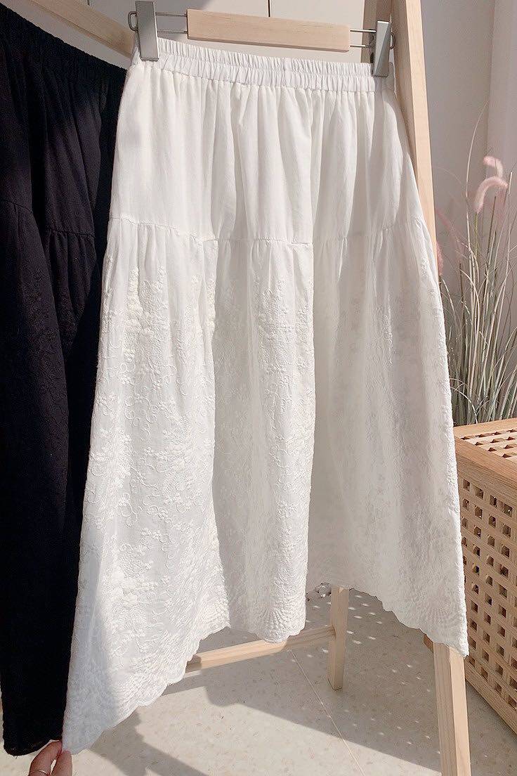 Korean literary fan embroidered lace stitching cotton and linen skirt women's summer loose and thin A-line skirt long skirt women's skirt