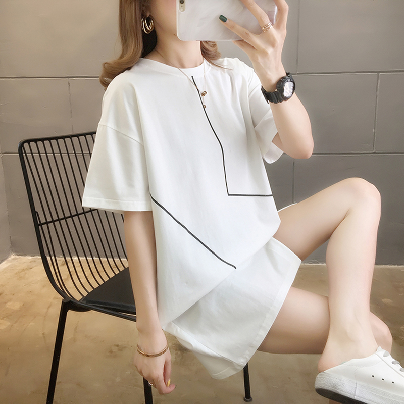 Hong Kong style mid-length T-shirt 2022 new summer dress Korean version simple short-sleeved women's large size slightly fat mm white T-shirt
