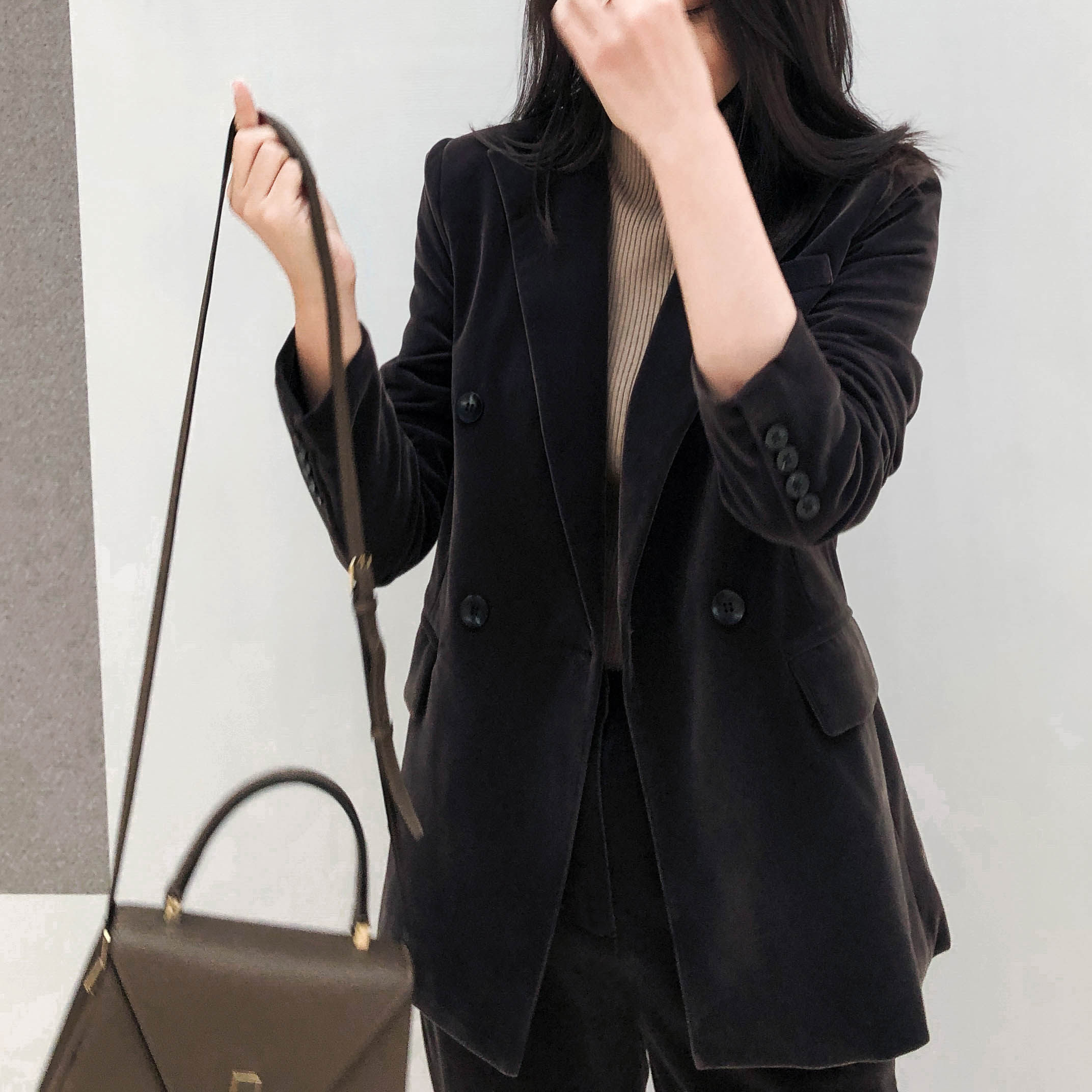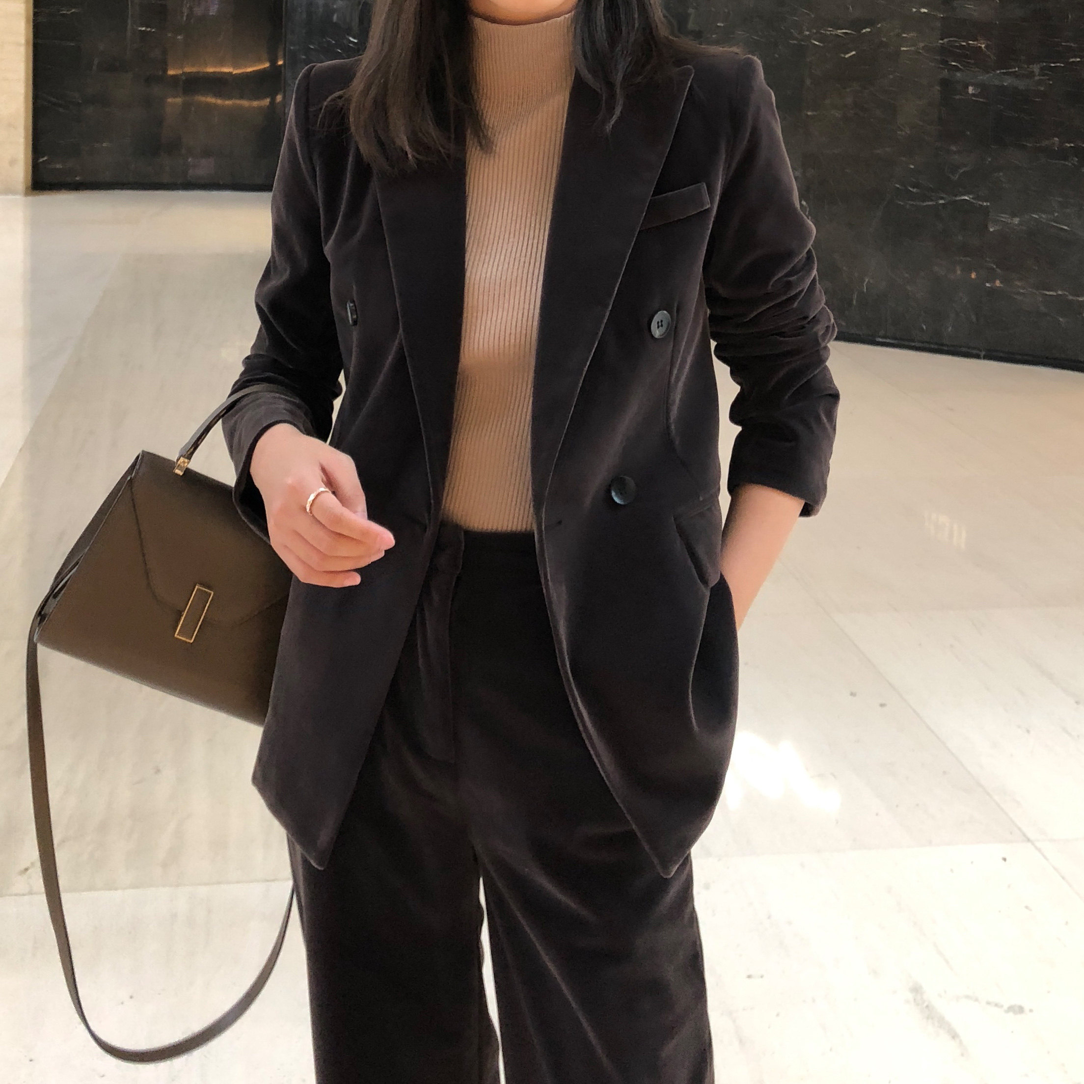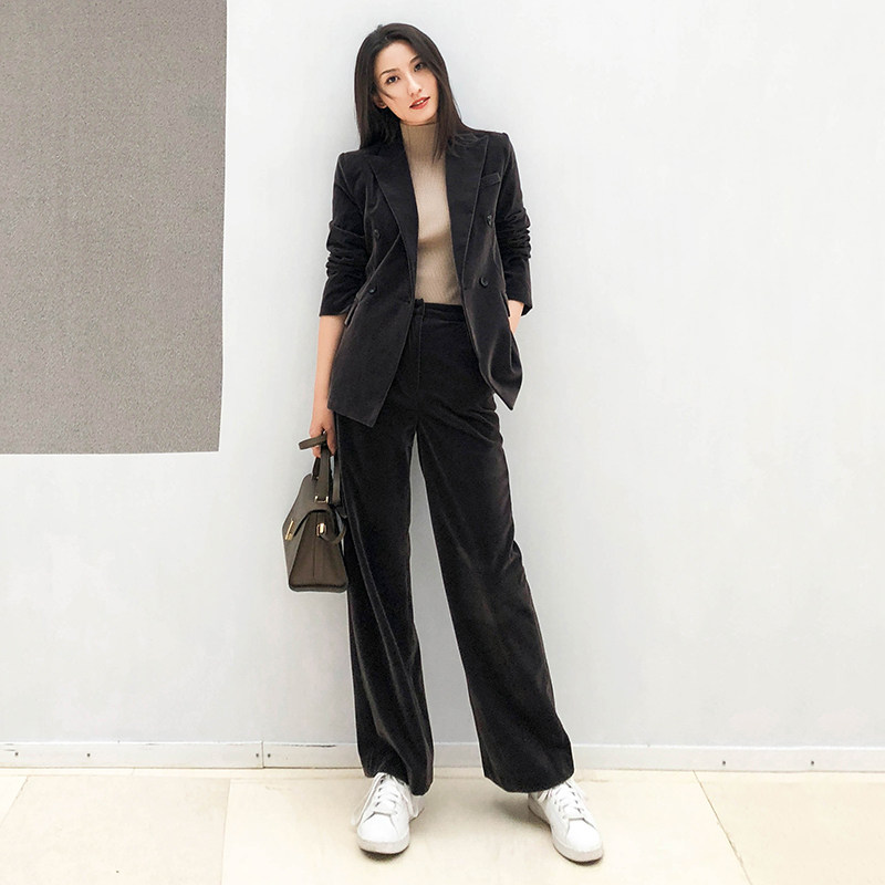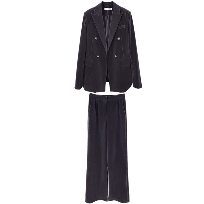 Gold velvet suit jacket women's 2022 spring and autumn new Korean version design niche suit two-piece trousers