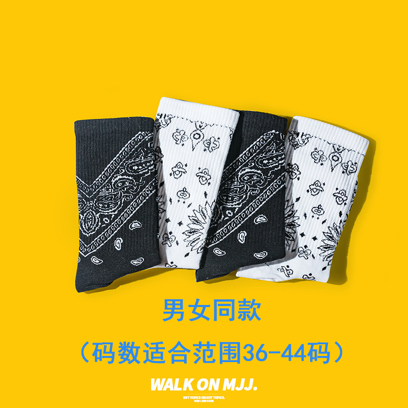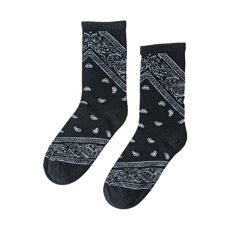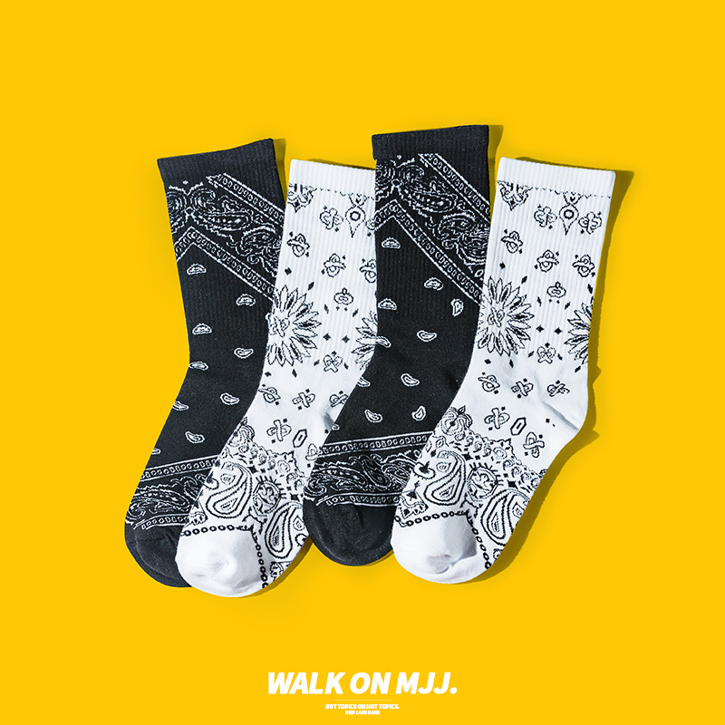 Tide brand black cashew flower national wind socks men's mid-tube socks summer thin cotton stockings women's ins tide long tube