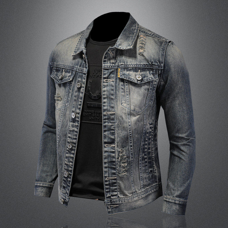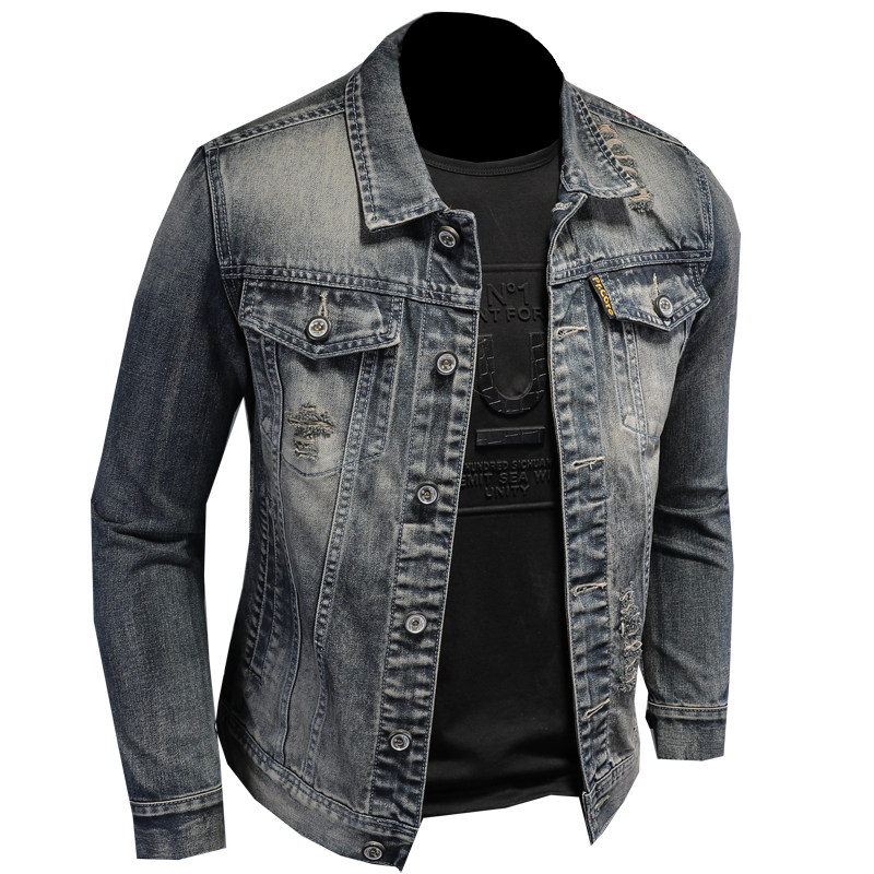Fried arcade motorcycle denim jacket men's Korean version of the trend Spring and Autumn Europe and the United States casual plus size men denim jacket slim fit