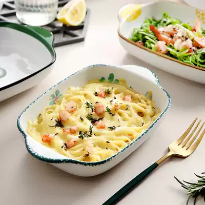 Baking tray Ceramic oven bowl Creative household Italian net red dinner plate ins wind cheese plate rectangular microwave oven special