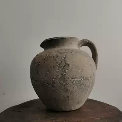 Set) retro Handmade coarse pottery decoration vase gray pottery bottle hotel homestay soft decoration pieces