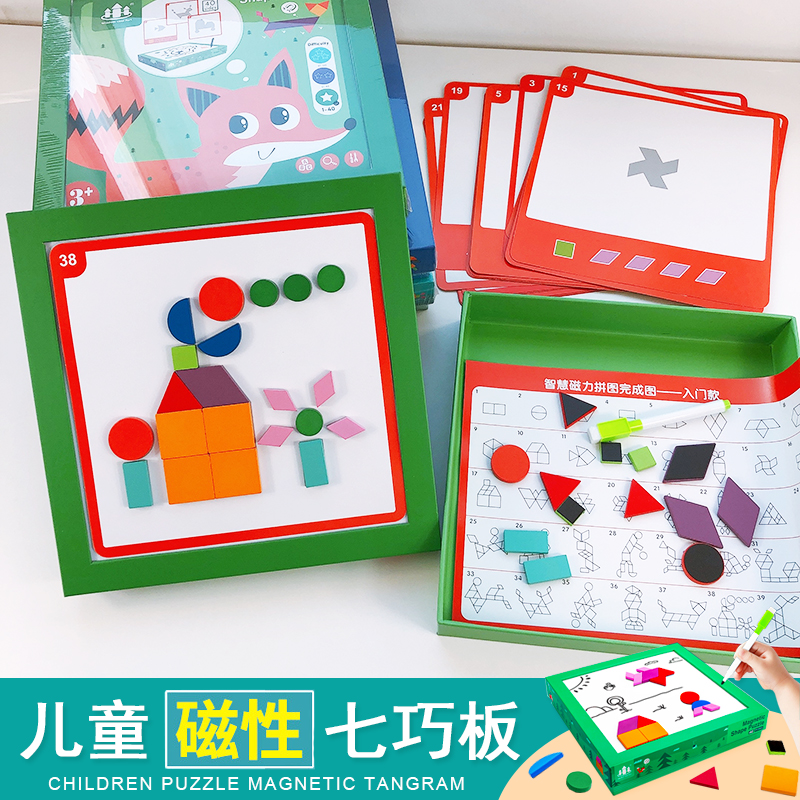 Magnetic primary version of wisdom spelling 40 questions suitable for 2-4 years old magnetic advanced version wisdom spelling 40 questions suitable for 3-5 years old magnetic challenge version wisdom spelling 40 questions suitable for 5-8 years old iron box magnetic Tangram 40