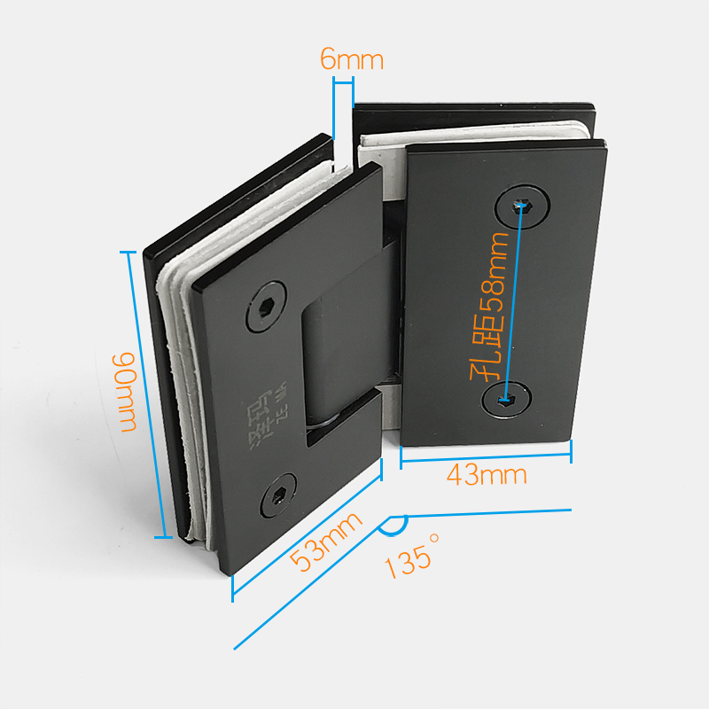 Glass door hinge 180 degrees black frameless tempered glass clip shower room hinge stainless steel bathroom clip 90 degrees