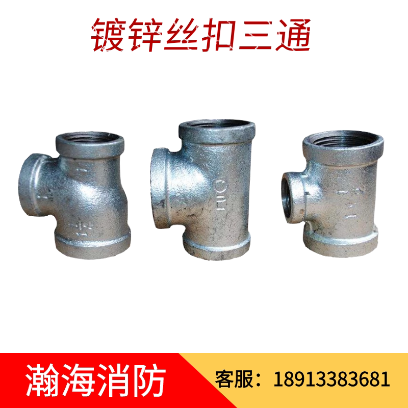 Hot-dip galvanized malleable steel three-inner wire through medium and large side large internal thread fire pipe fittings elbow direct four-way Taigu Mike
