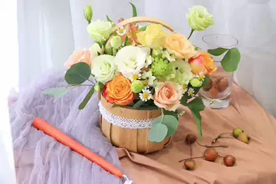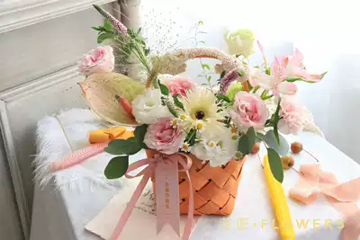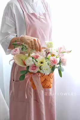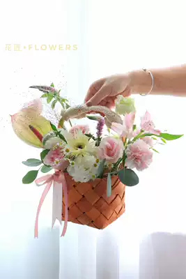 Japanese lace wood chip small flower basket Korean style Wood round handle flower basket hand woven wood basket