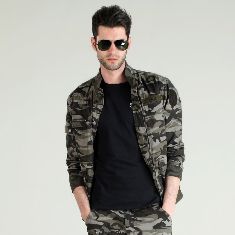 Spring and autumn workwear jacket men multi-pocket loose fashion slim Korean version of the tide jacket stand up collar long sleeve cardigan jacket