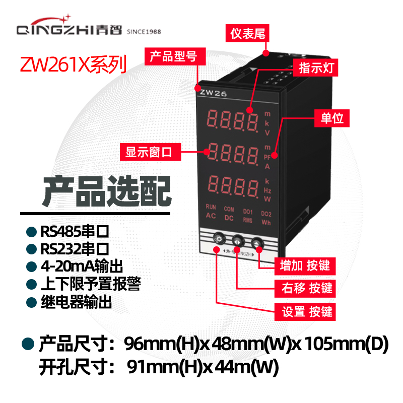 Qingzhi ZW1601 single-phase single parameter electric meter three-phase comprehensive electrical parameter measuring instrument current power factor