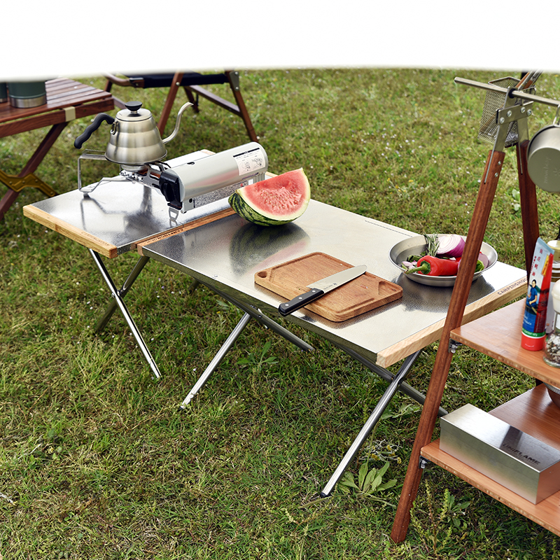 Coman Outdoor Portable Small Steel Table Picnic BBQ Table Camping Cooking Table Heat-resistant Folding Table Casual Table