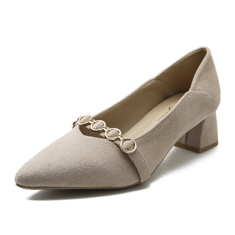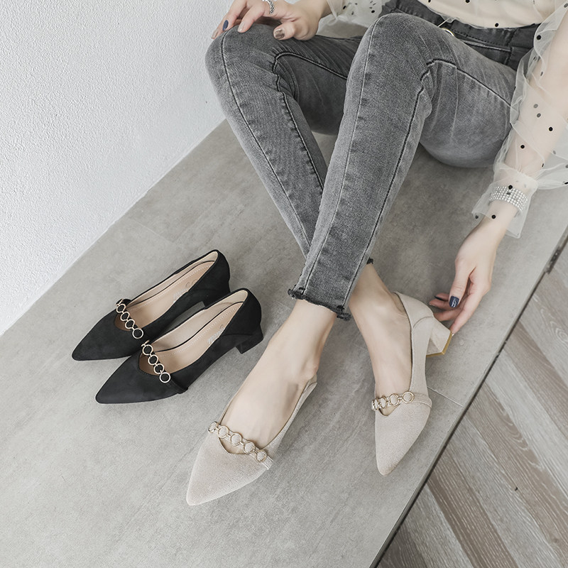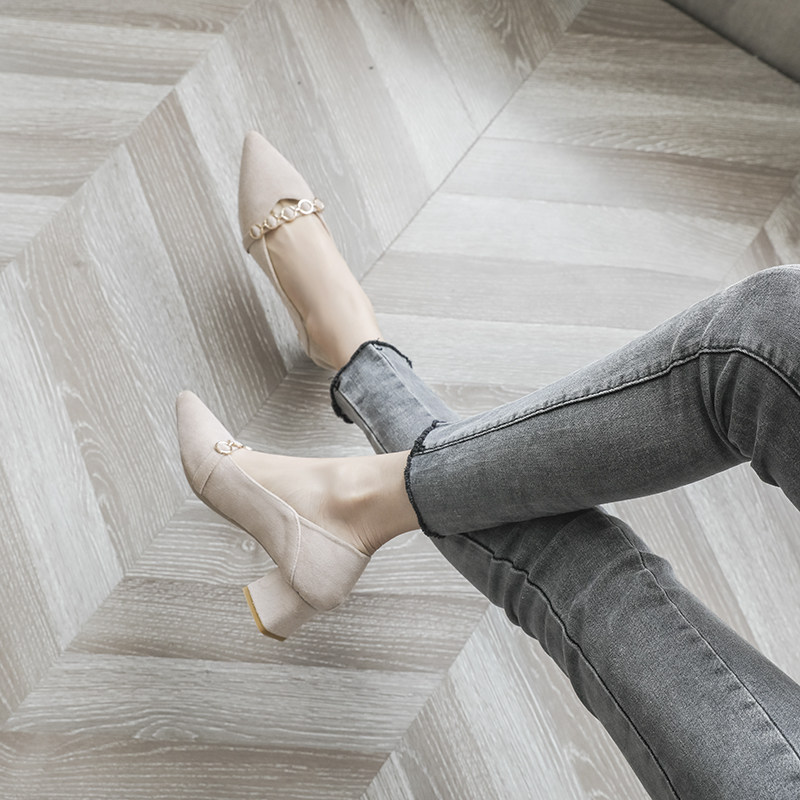Women's shoes spring 2022 new early spring models pointed toe middle heels thick heels high heels late evening gentle spring and autumn single shoes women