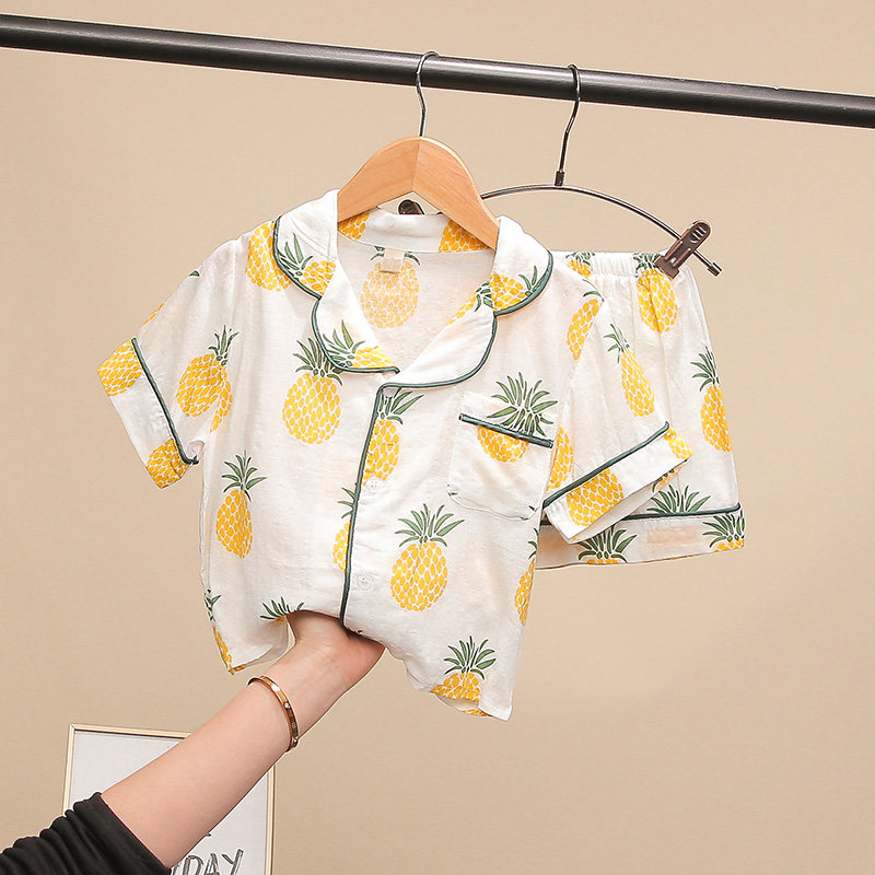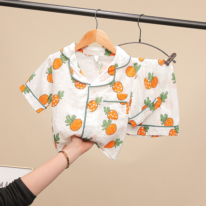 Children short sleeves Sleepwear Pants Sets Summer Thin boy girl's air conditioning Cotton Cotton Cloth Shorts Home Conserved