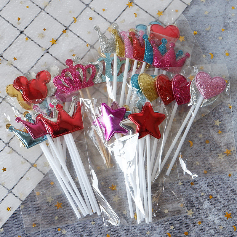 Birthday cake dress up PU plug card love five-pointed star crown Mickey plug flag dessert decoration decoration plug-in
