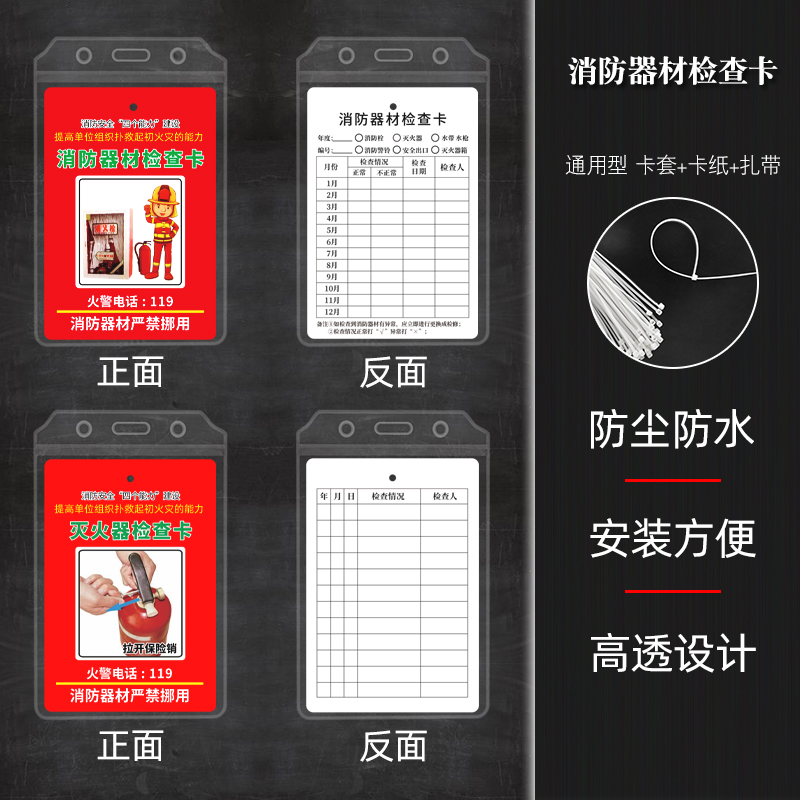 Fire Equipment Record Card Fire Extinguisher Inspection Registration Identification Plate Patrol Inspection Patrol Self-Inspection Card Monthly Label Table Card Maintenance Card Sleeve Waterproof Regular Bolt Point Inspection Card Point Check Table Customized Facilities