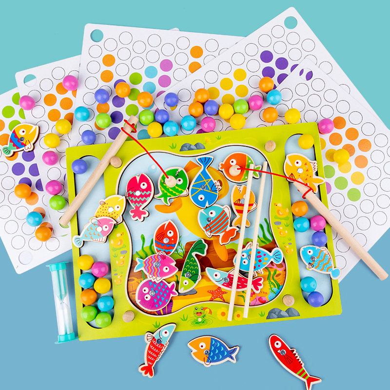 2-3-4-5-year-old child early teaching hand eye coordination training attention dedicated to cultivating fishing clip bead toy