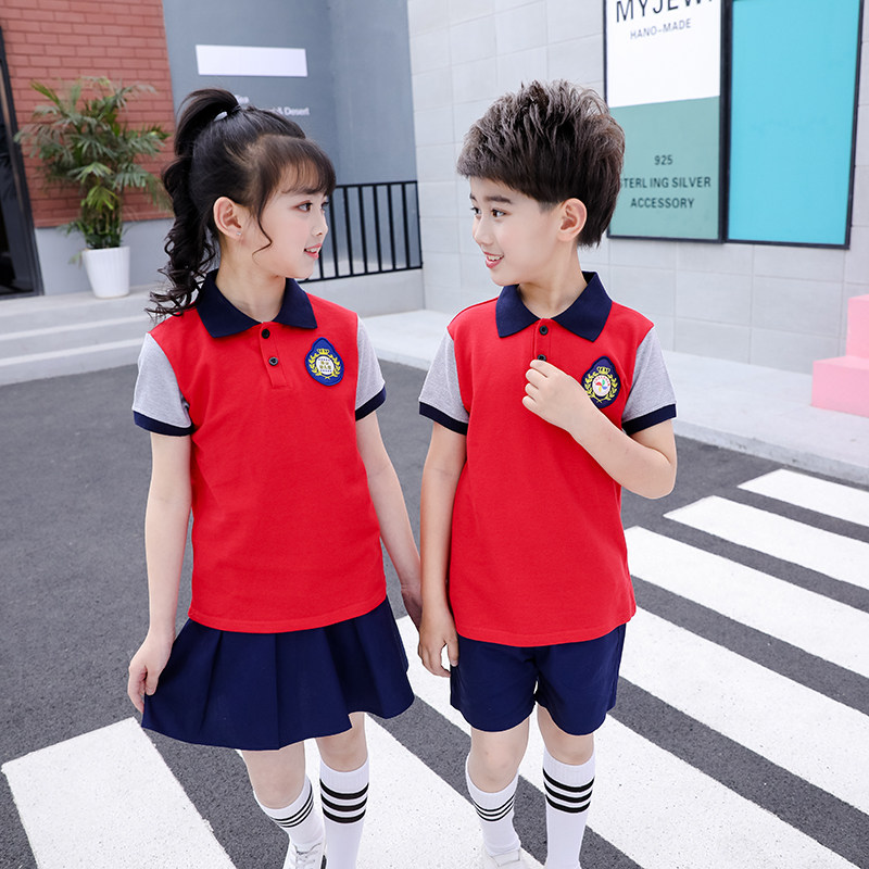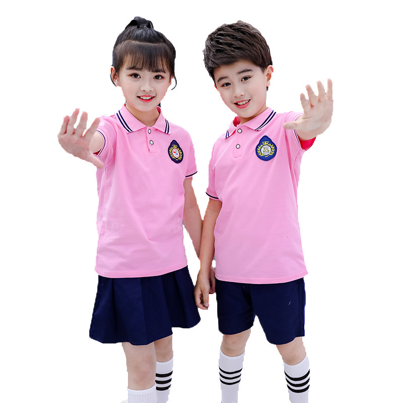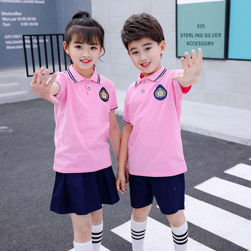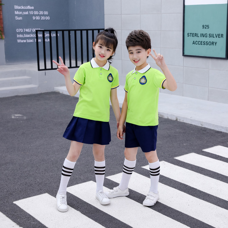 Kindergarten Garden Suit Summer Dress New School Uniform Custom Child Clothing Sports Pure Cotton Cover Head Short Sleeve Inglén Wind Performance Clothing