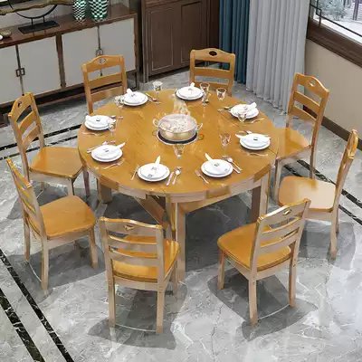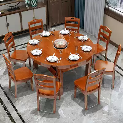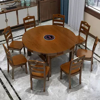 All solid wood dining table and chair combination with induction cooker one table six chairs Chinese solid wood table dining table foldable table