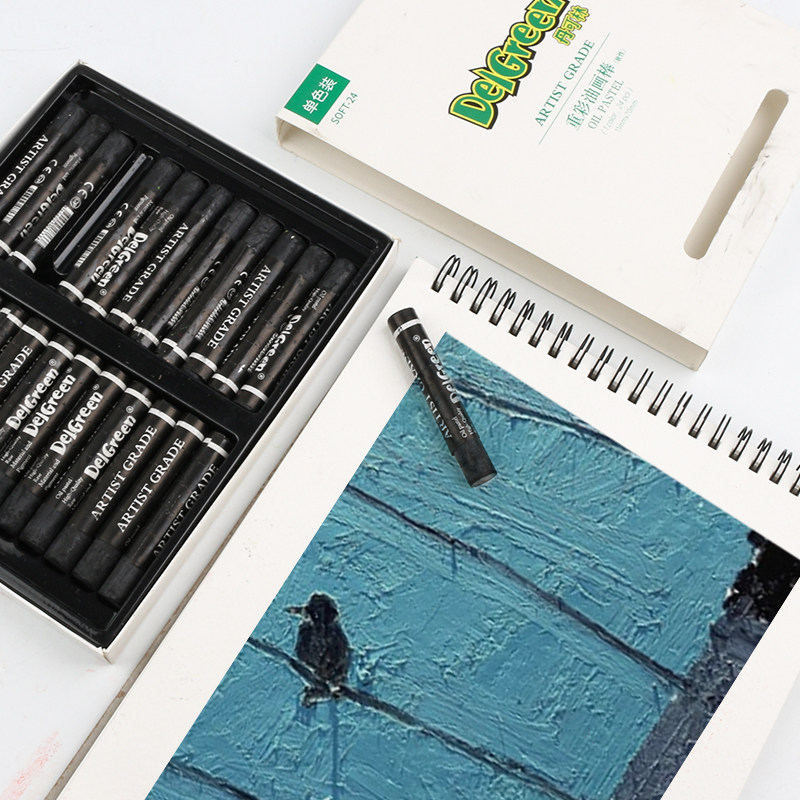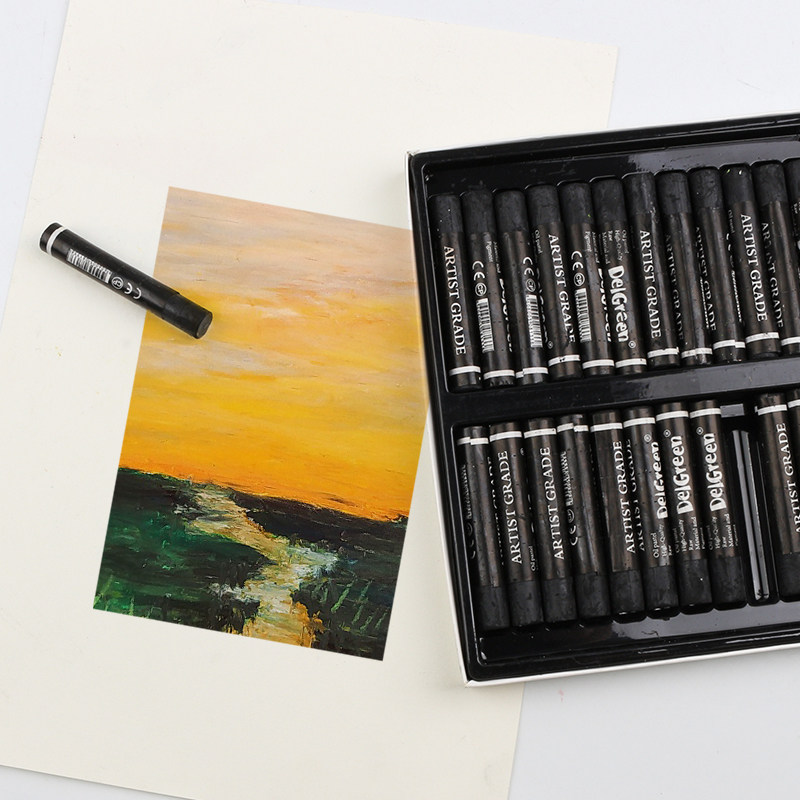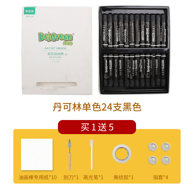 Dan Corin 24 black monochrome boxed second generation heavy color oil painting stick Children's crayons Primary school students washable colorful stick Oily heavy color stick Children heavy color oilizing stick