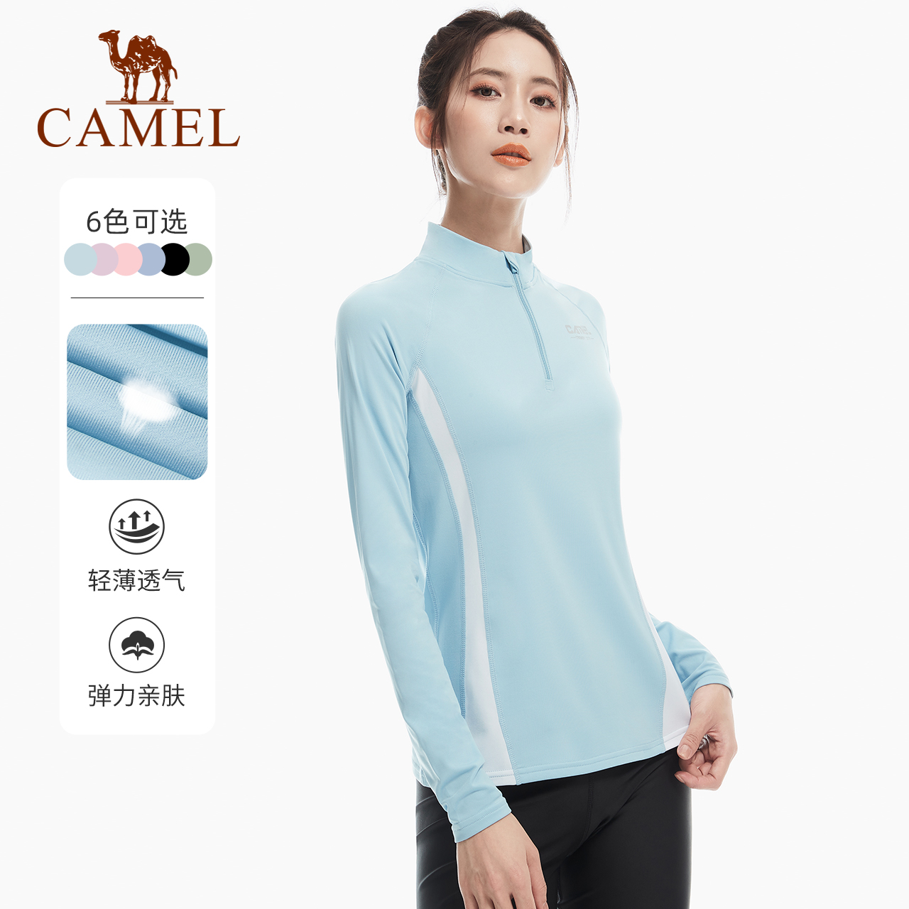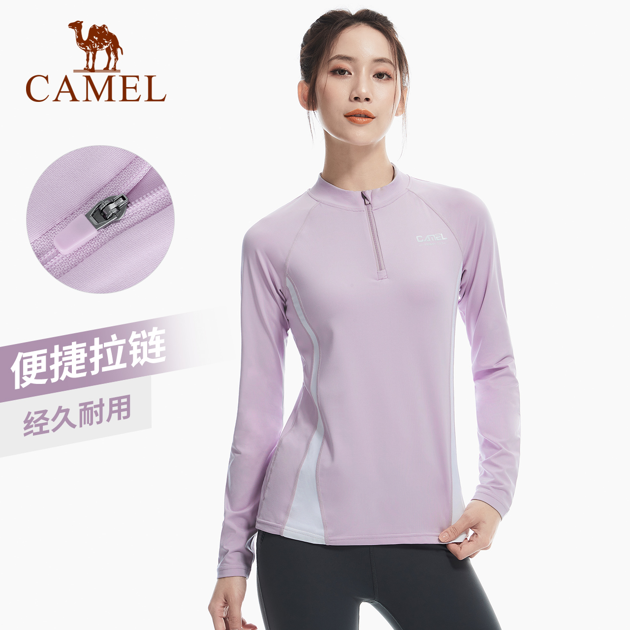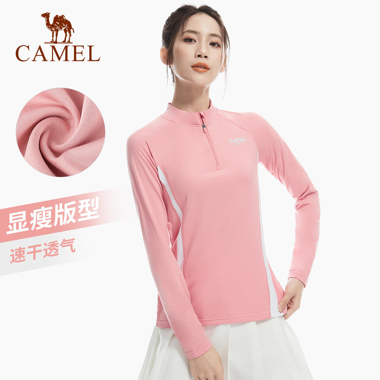 Camel quick-drying sport T-shirt ladies 2022 spring and autumn stand collar long sleeves plus velvet breathable yoga fitness running top