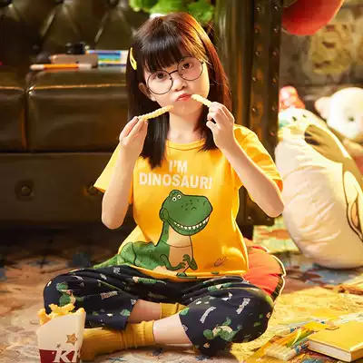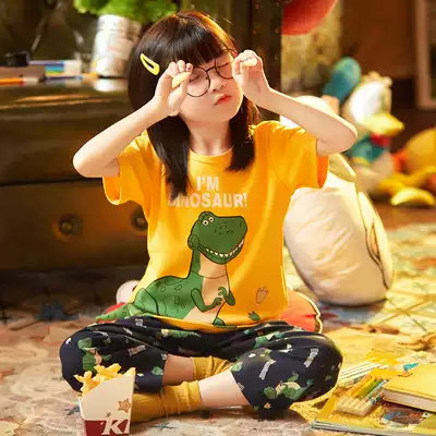 Girls' pajamas cotton children's short sleeve summer thin girl Summer baby middle child two-piece set home clothes