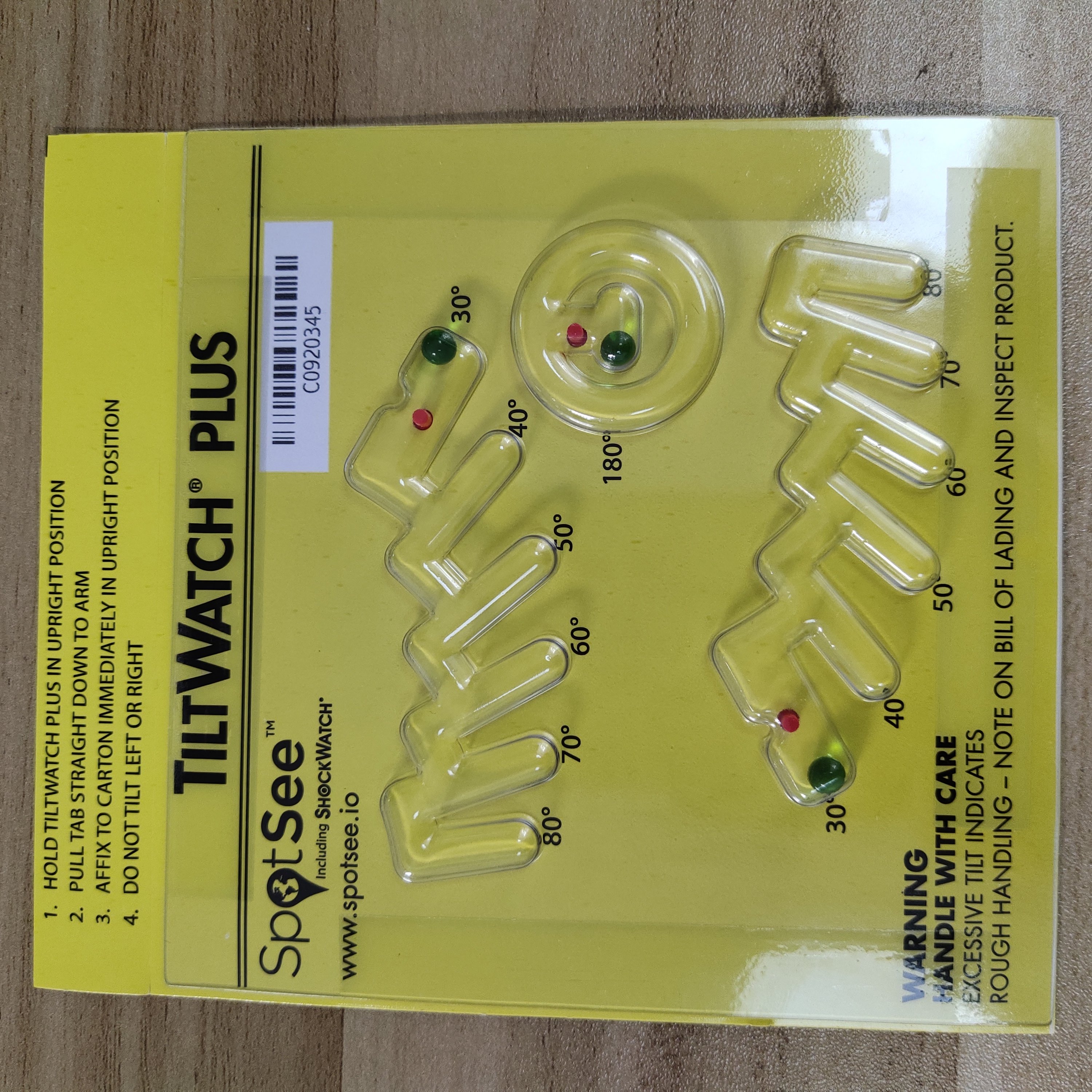 TILTWATCH XTR anti-tilt label wooden box transport upward indication discoloration plastic self-adhesive warning sticker