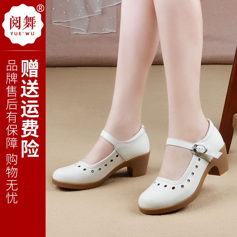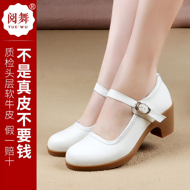 Reading dance with dance shoes Genuine Leather Square Dance Women Shoes Soft Bottom White Fashion Outside Wearing Water Soldiers Dance Shoes Dancing Shoes-Taobao